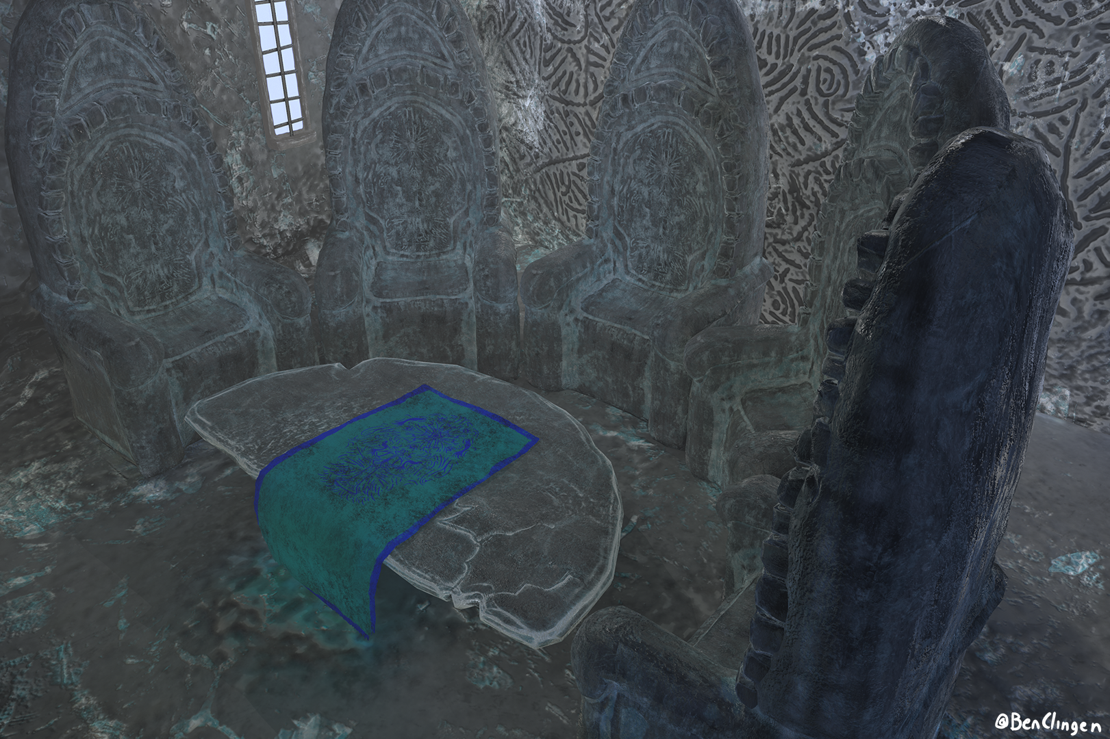 This piece depicts a hypothetical council room belonging to the Giants of the Northern Limit, a place where these hulking creatures would enforce their rule.