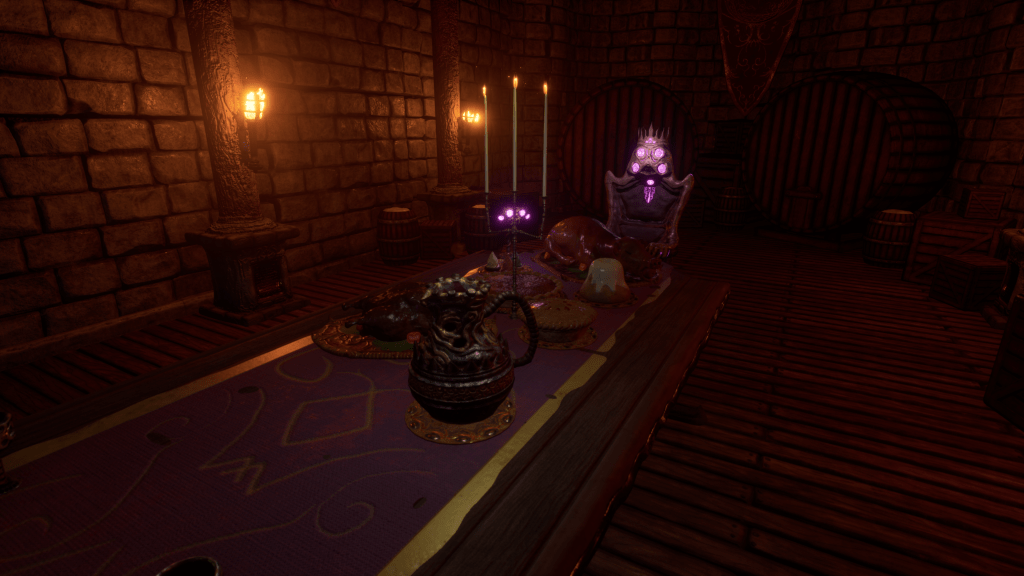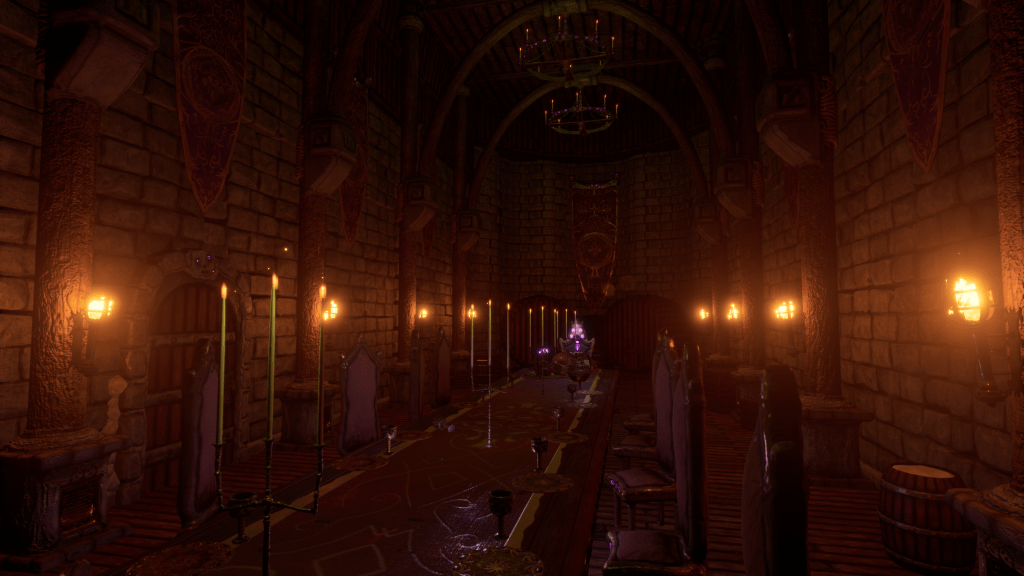 This piece was made to accompany a D&D setting I was developing at the time of its inception. A shadowy cult has found its home in an abandoned castle in the ruins of a long dead country, and has prepared a feast for their patron, who they hope will grace them with His visage in the coming hours.